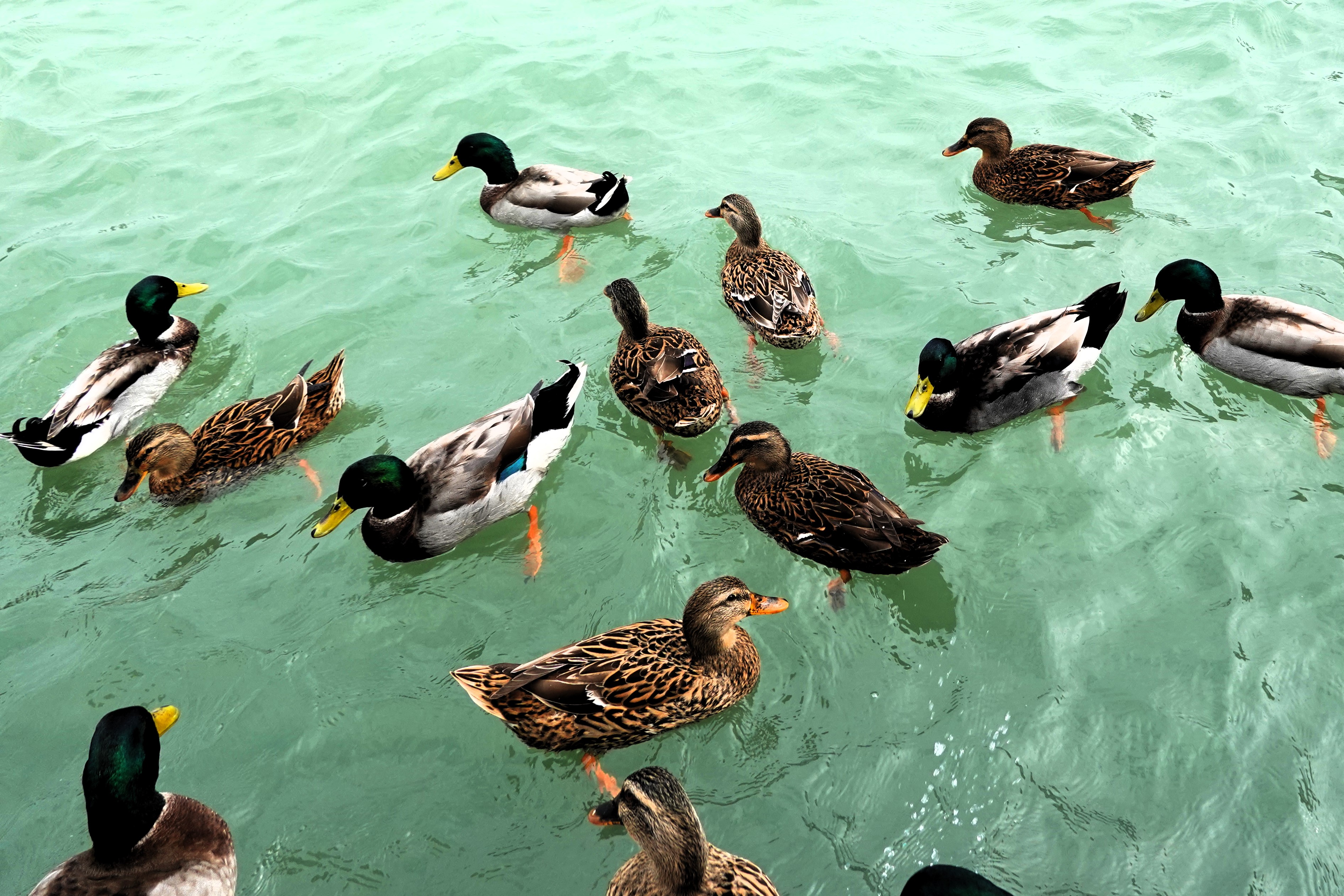 雄鴨有綠頭,栗色胸部和灰色身體,雌鴨帶橙色的駁褐色,嘴上有黑色斑點。台灣屬綠頭鴨的度冬地。