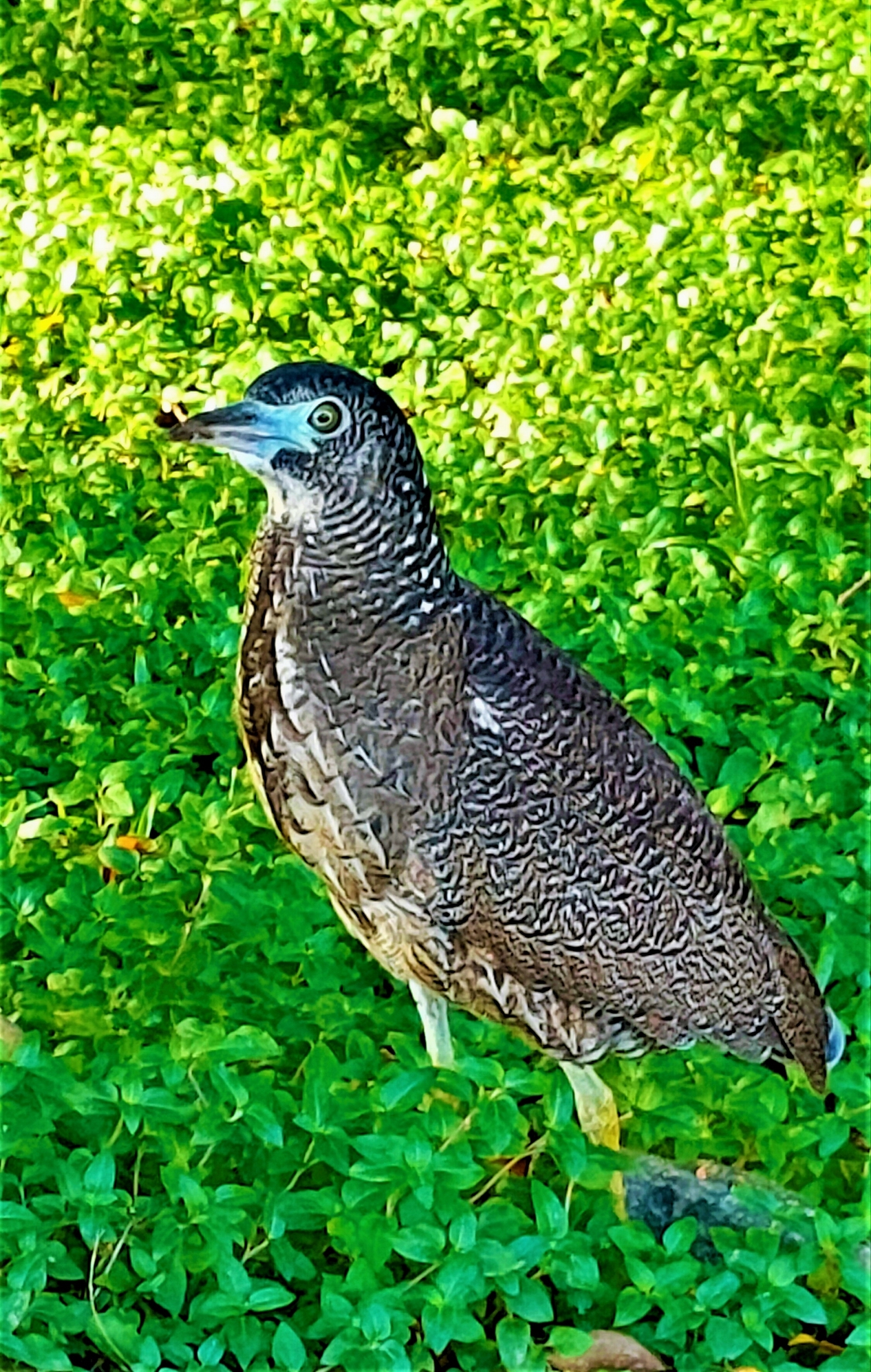 有大笨鳥的別稱。 鷺科,在台灣為常見的留鳥。站立時高約47公分,棲息於林裡或平地裡的公園綠地,常於夜間活動,以小型鳥、魚及蚯蚓為食。成鳥有黑冠,面孔和脖子為紅棕色,腹部有細條紋,翼黑。 圖二:有黑冠的成鳥(20220616@忠明南路綠園道)