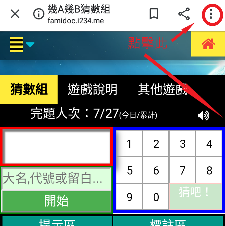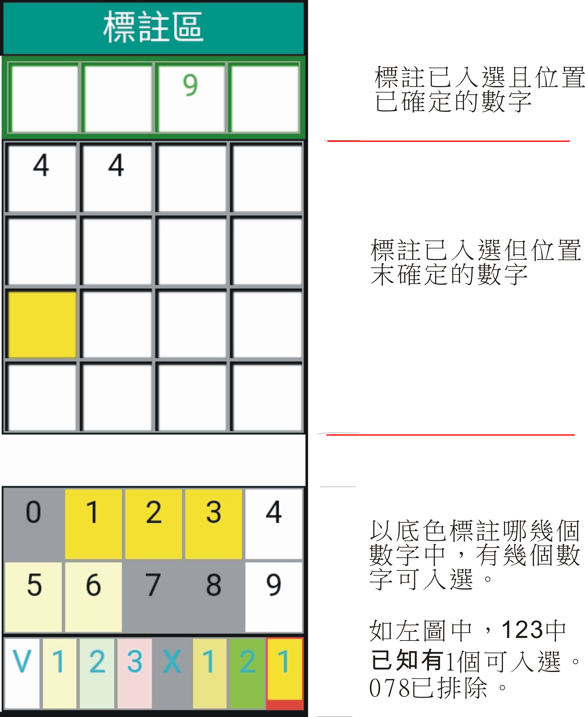 電腦會以你「開始」時輸入的大名或別號,記錄每次成功完題所用的猜測次數(1-9次),完題後出現排行榜顯示你的累計平均猜測次數。